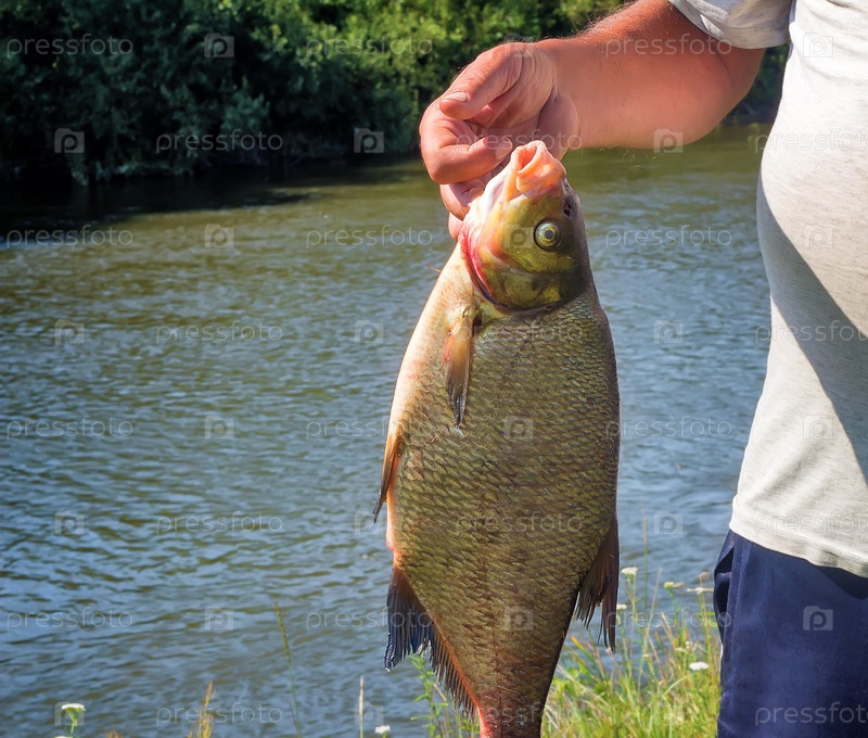 Пойманная рыба в руках рыбака