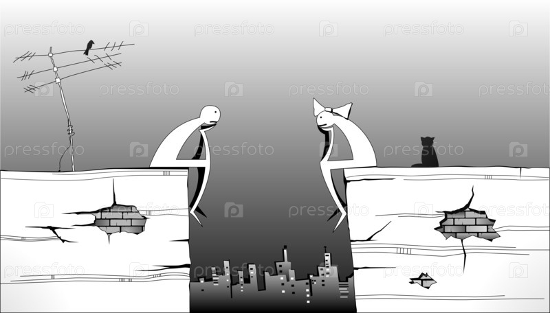 Влюбленные персонажи сидят и смотрят друг на друга