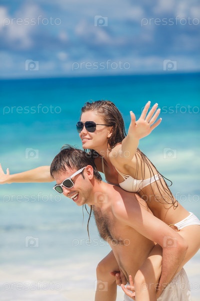 Счастливая пара на пляже