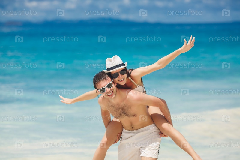 Счастливая пара на пляже