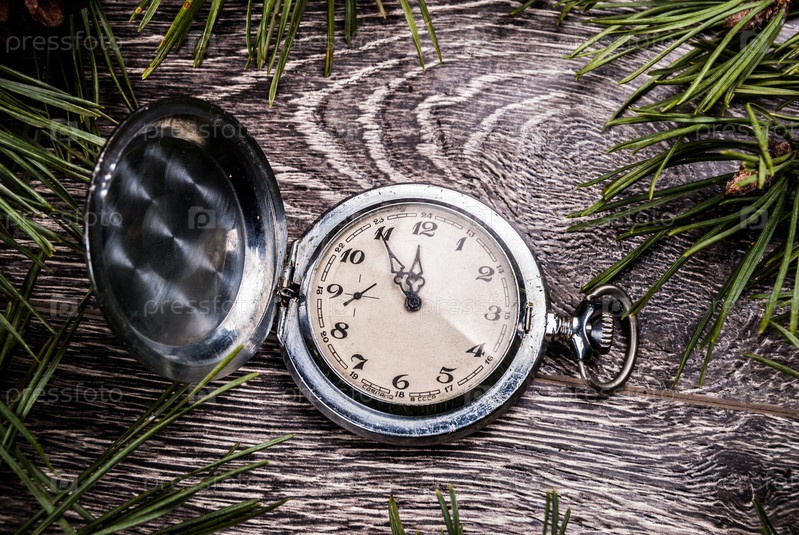 Рождественская елка с шишками и часами