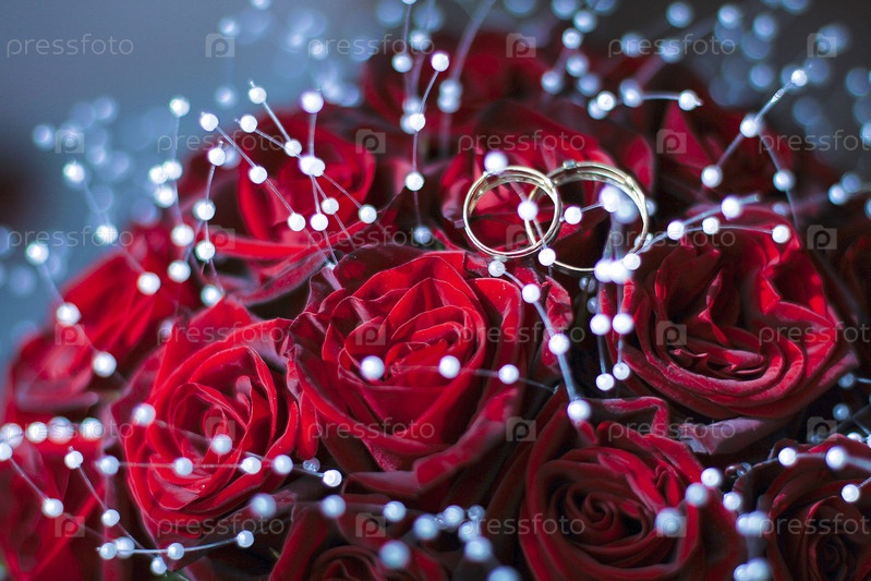 Свадебный букет и обручальные кольца