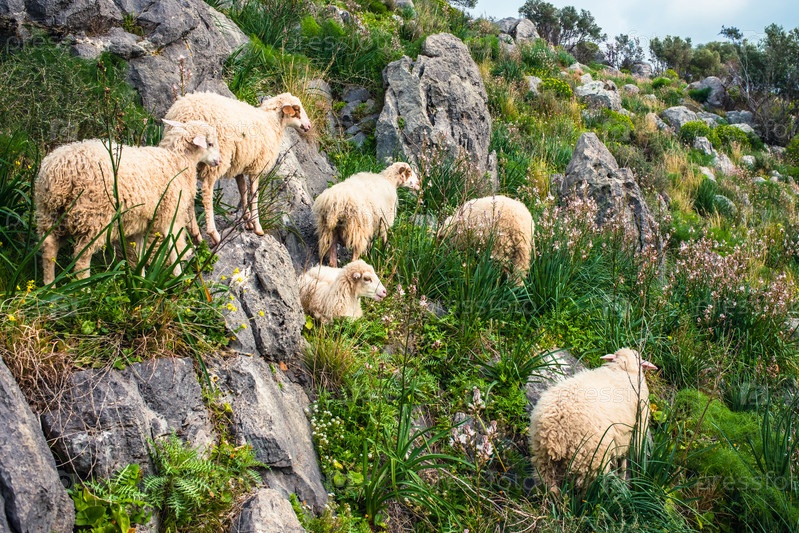 Овцы на склоне горы