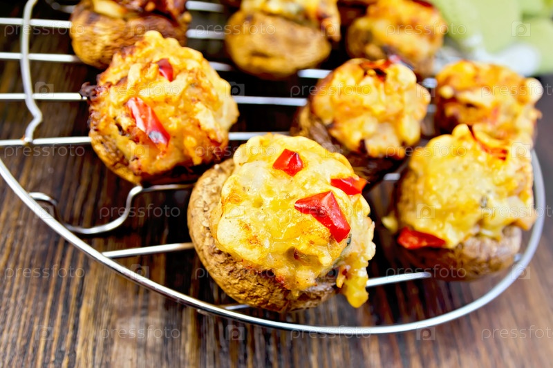 Шампиньоны фаршированные мясом на решетке