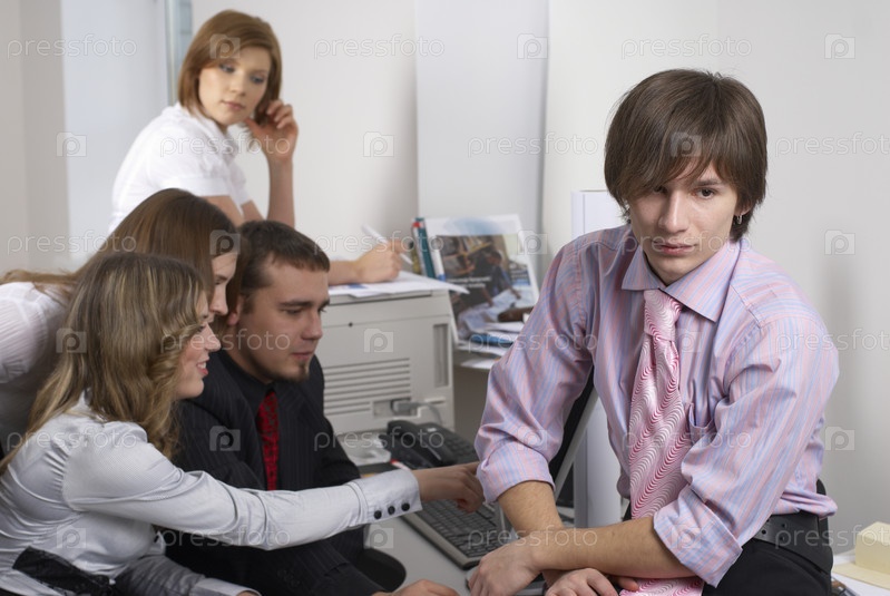 Предприниматель - лидер команды деловых людей, работающих в офисе