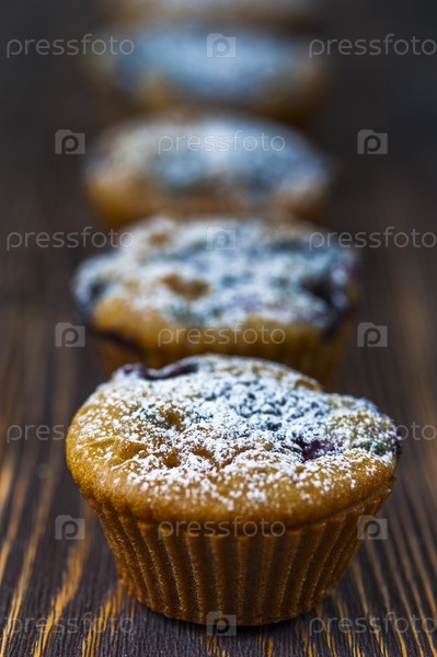 Кексы с черной смородиной, стоя в ряд