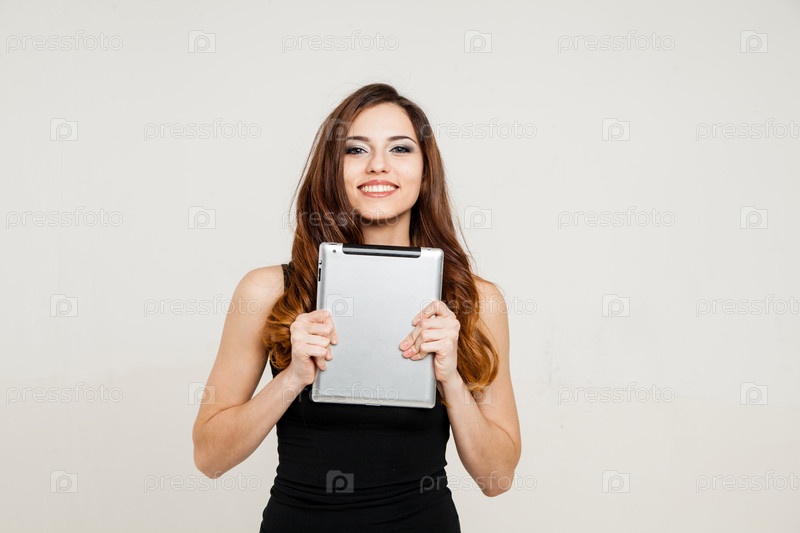 Молодая женщина, держащая планшетный ПК