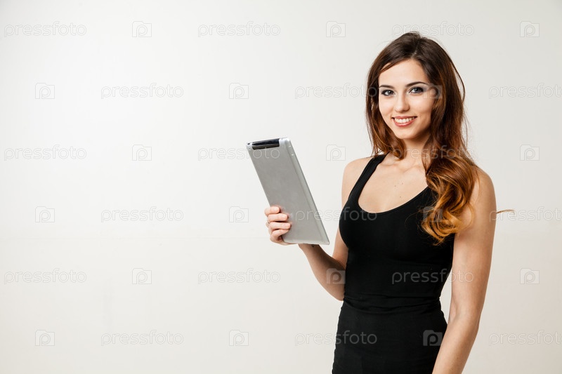 Молодая женщина, держащая планшетных ПК