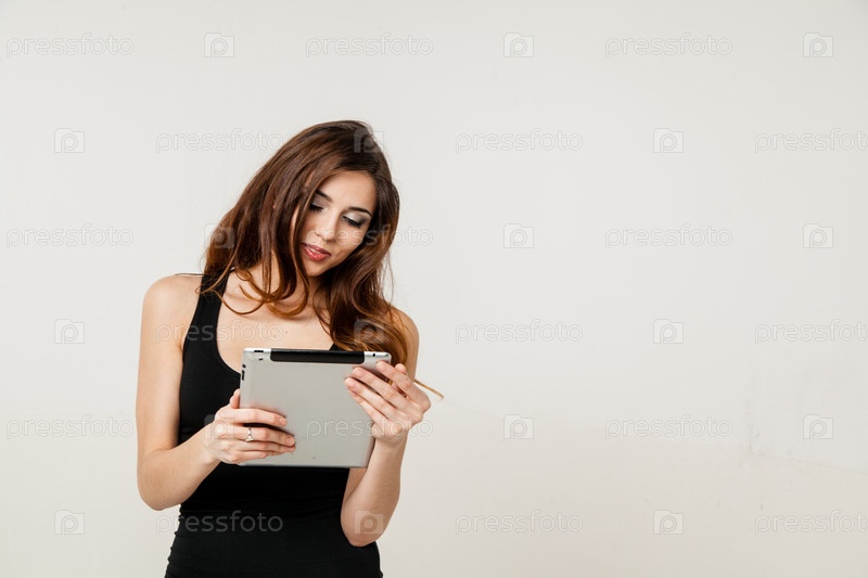 Молодая женщина, держащая планшетных ПК