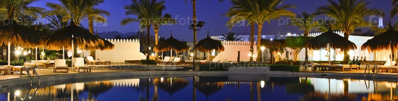 Соломенные зонтики и шезлонги у бассейна в Шарм-эль-Шейх