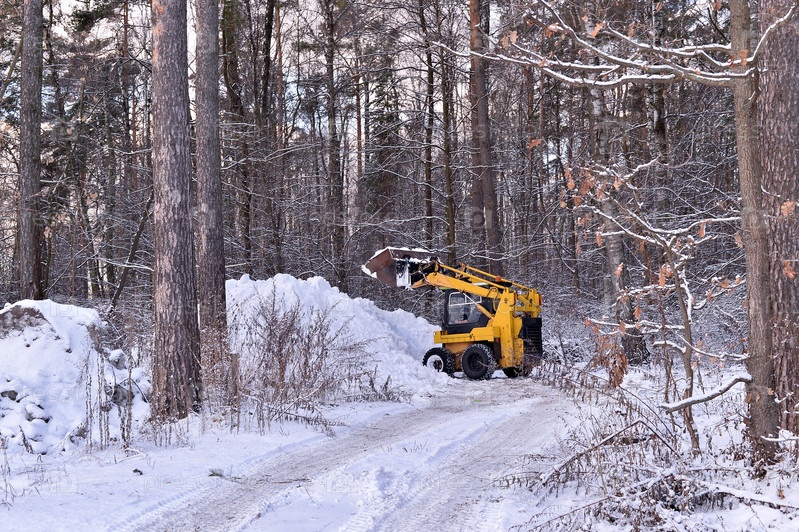 Трактор счищает снег с дороги