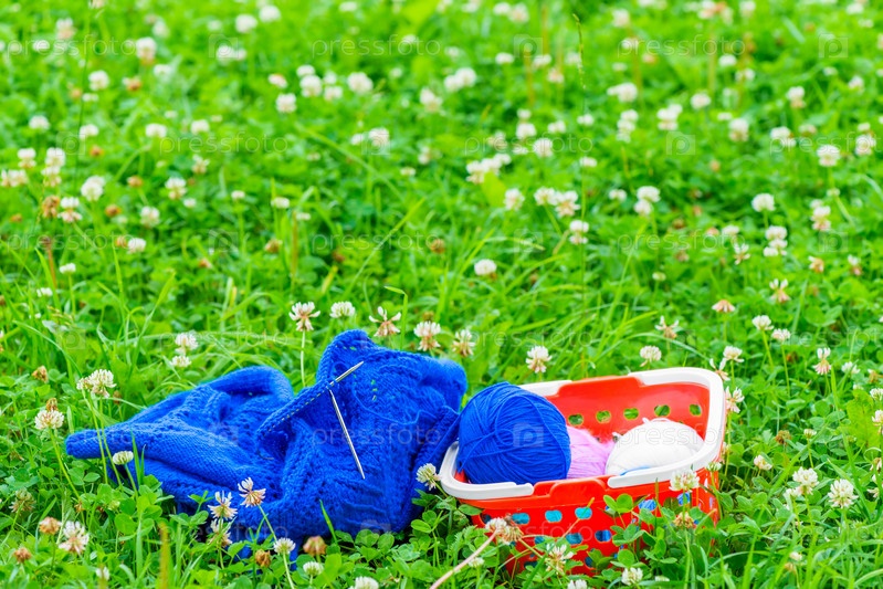 Корзина с мотками шерсти