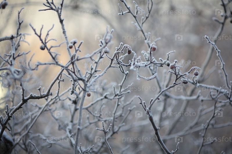 Зимние веточки и трава покрыта Мороза и снега
