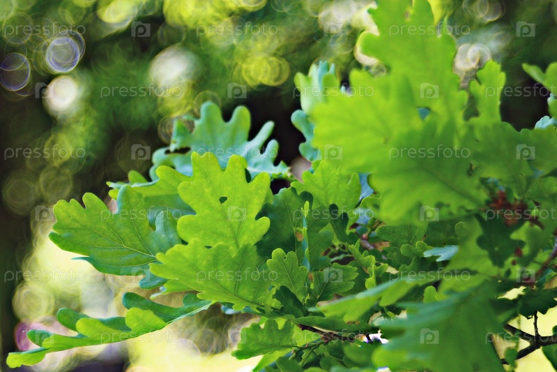 Зеленые листья дуба Боке