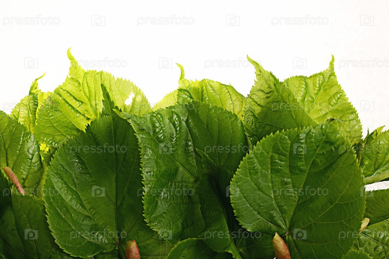 Зеленых листьев на белом фоне