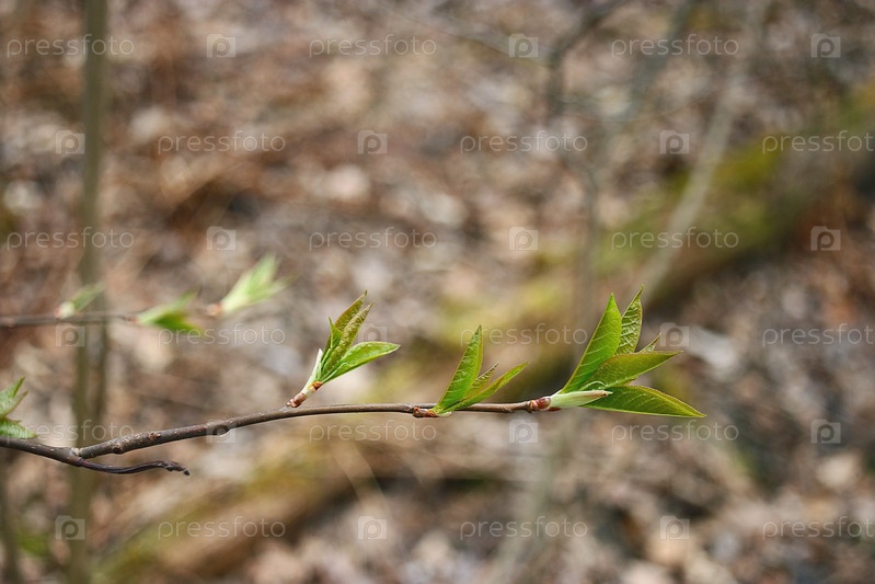 Первые листья весной ветви фона