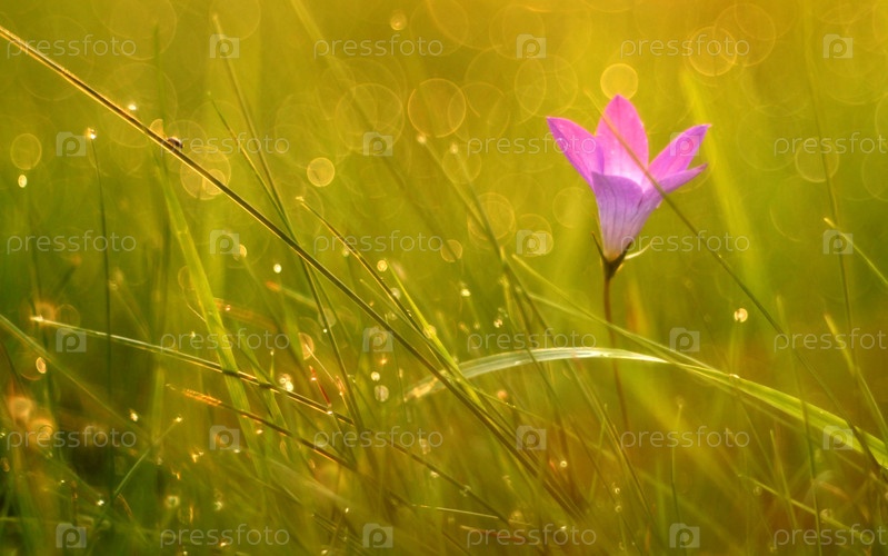 Капли росы на траве летнего заката