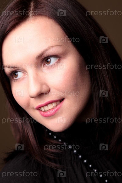 Портрет красивой брюнетки на черном фоне