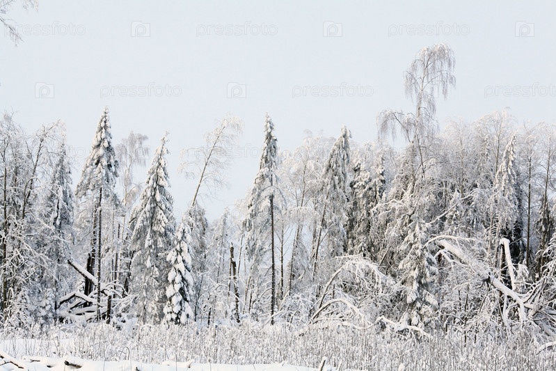 Холодная зима лесной пейзаж снег