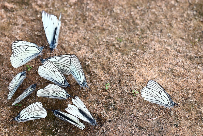 Белые бабочки на песке