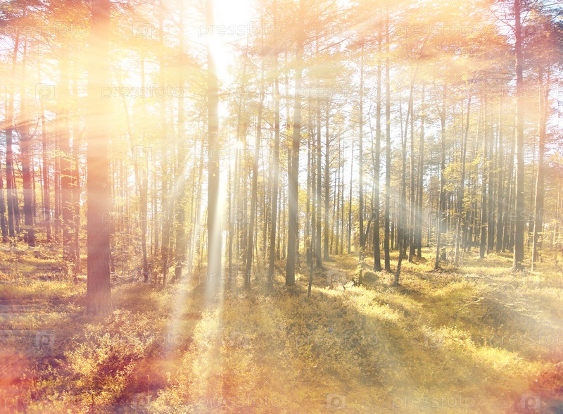 Осенний лес в лучах солнца