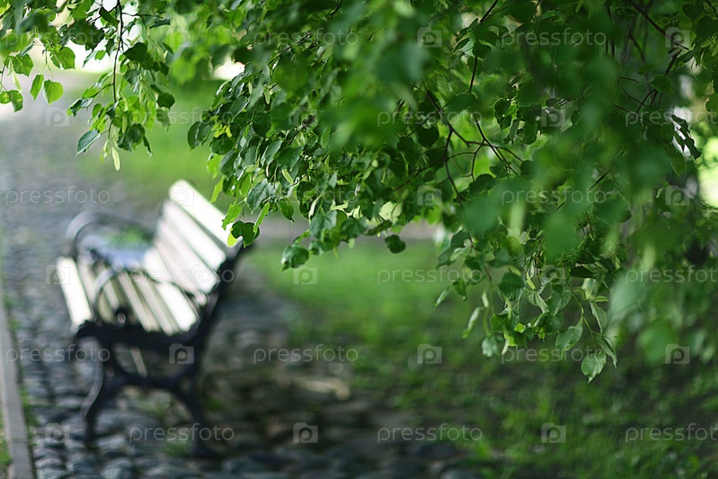 Скамейка в парке отдыха летом