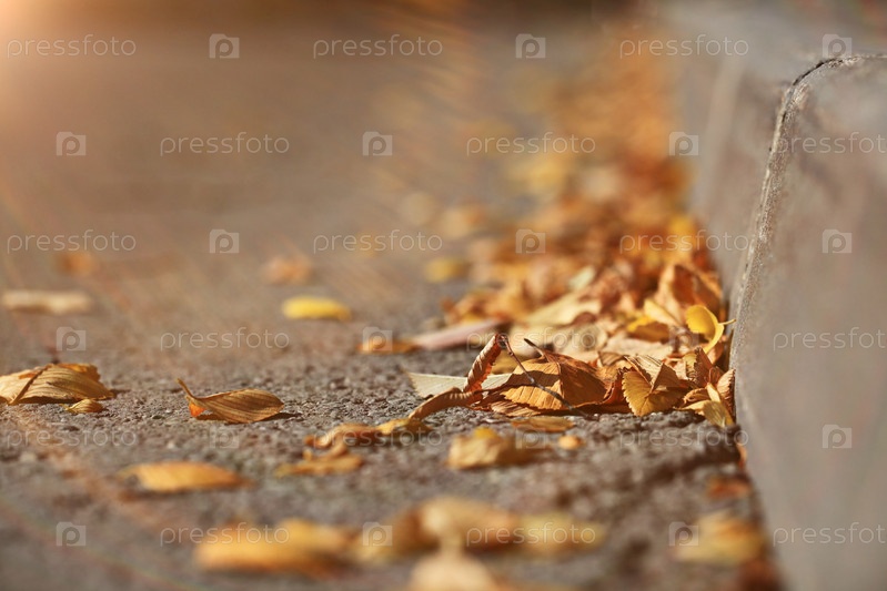 Падший желтые листья на асфальте