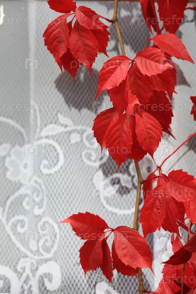 Листьев красного винограда на стене