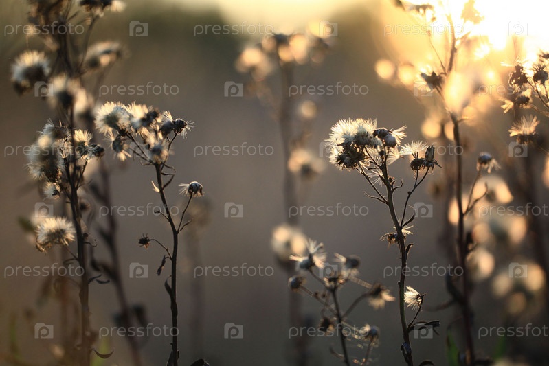 Осенние ветки и трава на закате