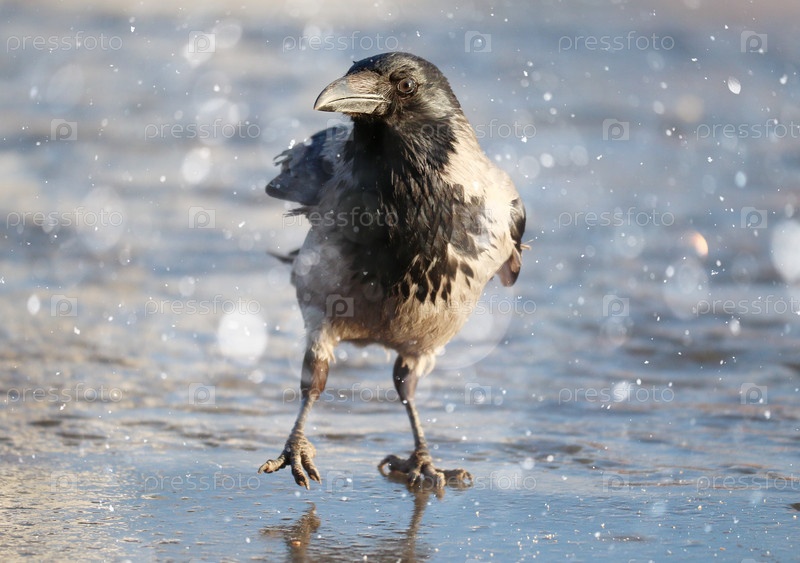 Ворона льда зимой дикой природы