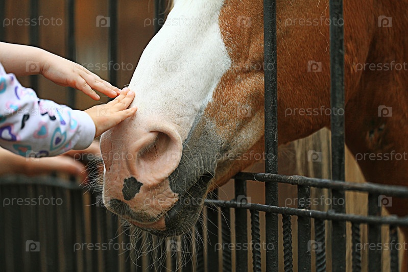 Человек руки поглаживая лошади