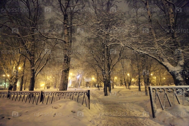 Ночной Зимний пейзаж в городе