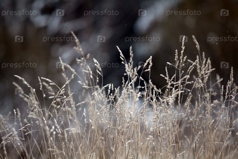 Зимние веточки и трава покрыта Мороза и снега