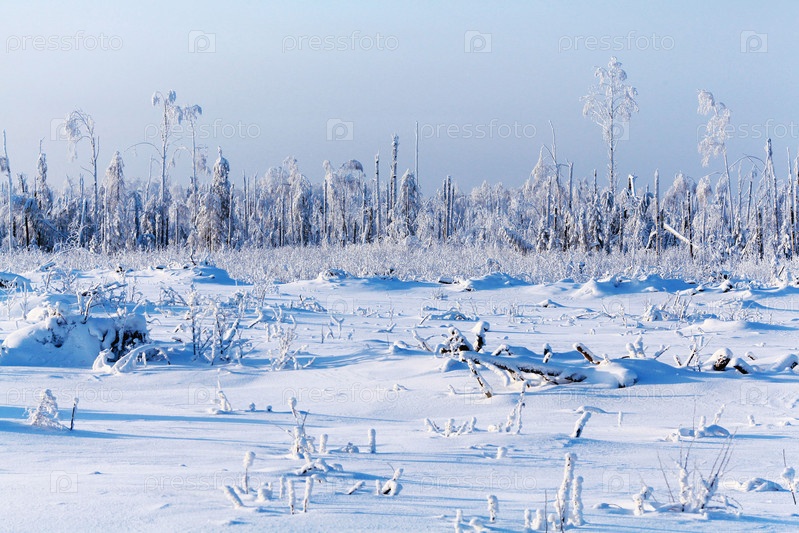 Холодная зима лесной пейзаж снег