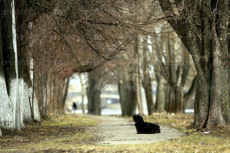 Пес смотрит на деревья