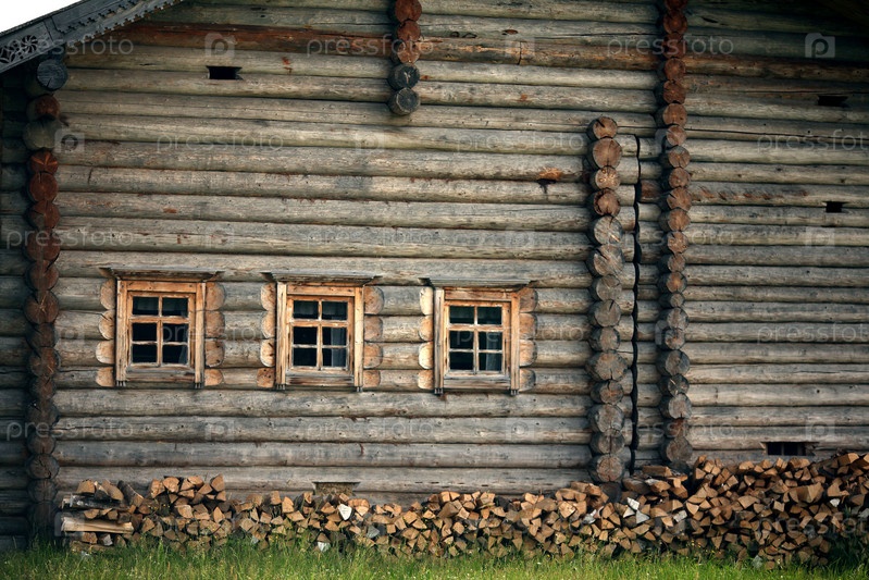 Окно старый деревянный дом с резьбой
