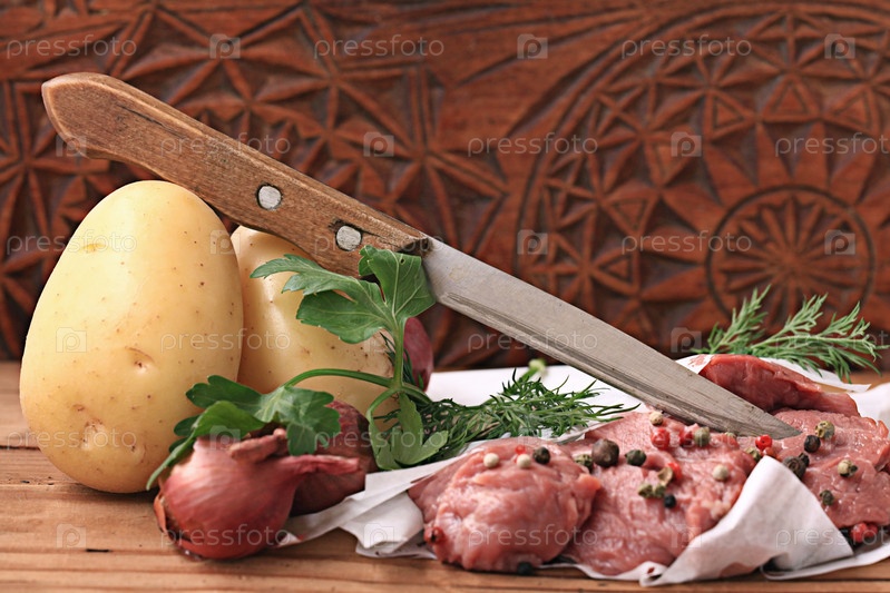 Сырое мясо и картофель