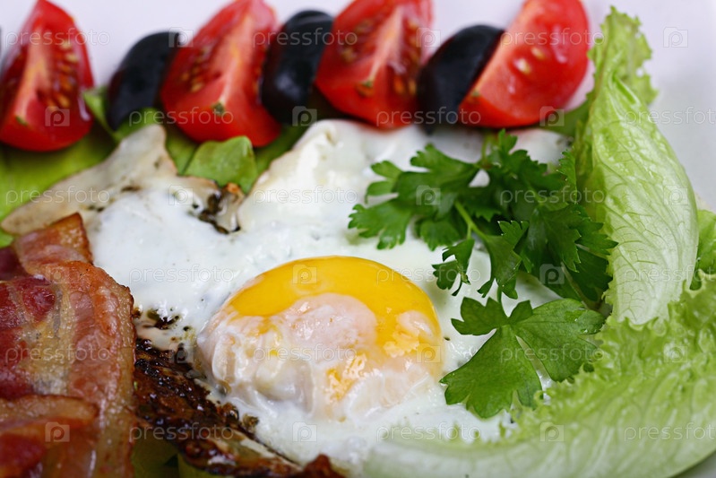 Английский завтрак с яичницей и беконом