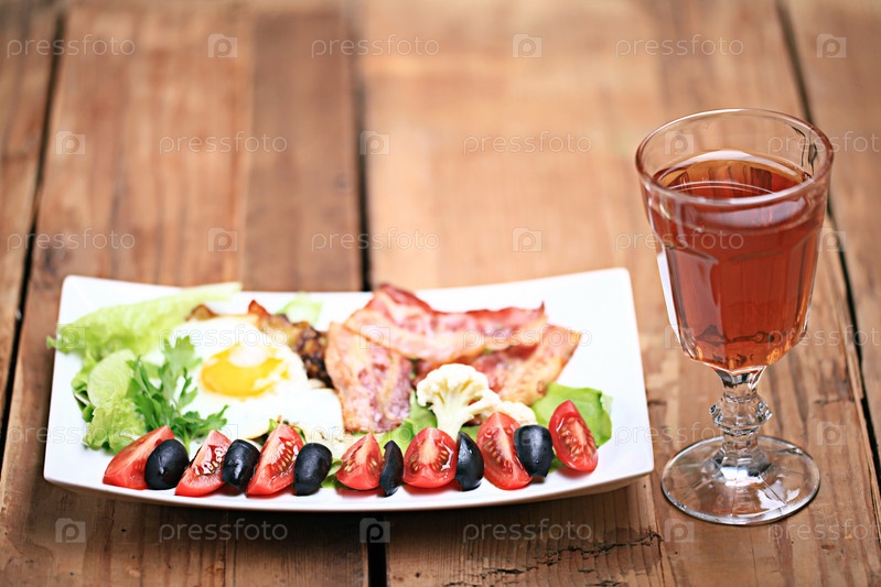 Английский завтрак с яичницей и беконом