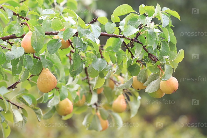 Груша на ветке спелых желтых