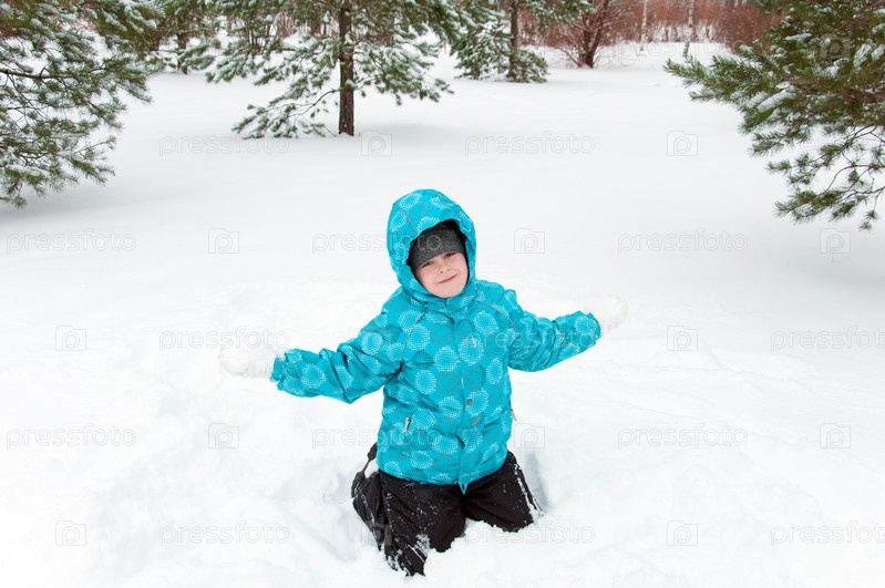 Мальчик сидит на снегу