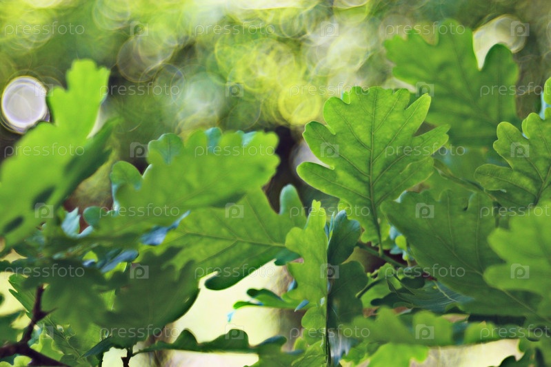 Зеленые листья дуба Боке