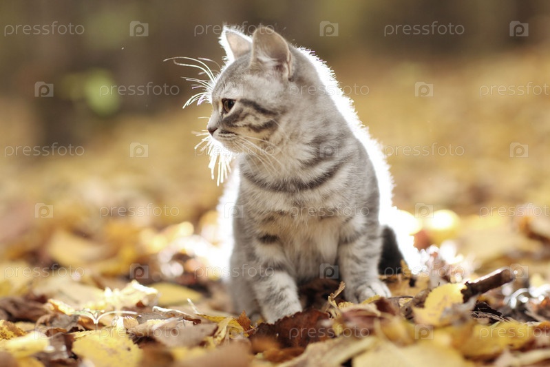 Британский котенок в Осенний парк