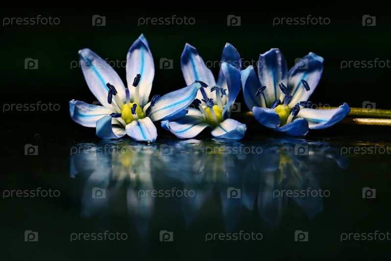 Голубые цветы макро черный фон