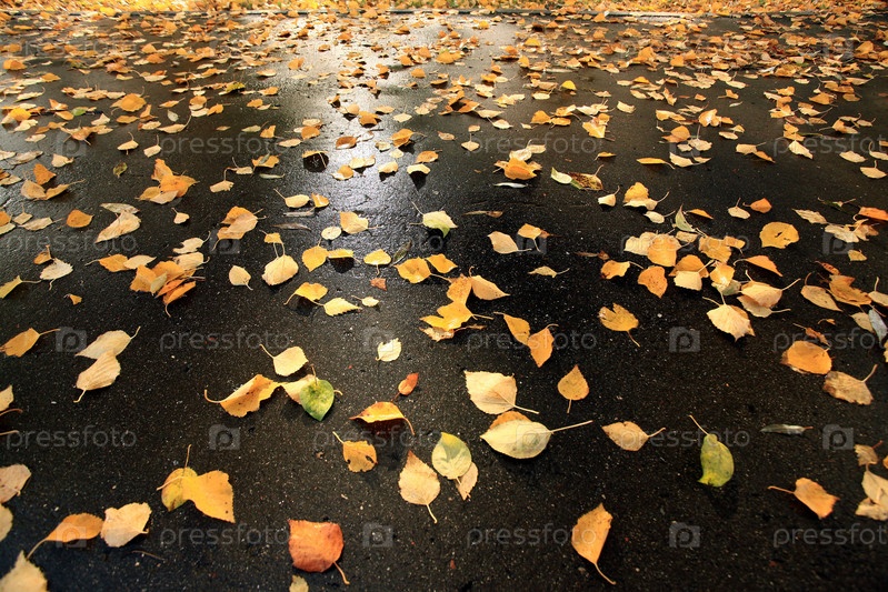 Желтые листья на мокрый асфальт