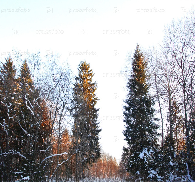Холодная зима лесной пейзаж снег
