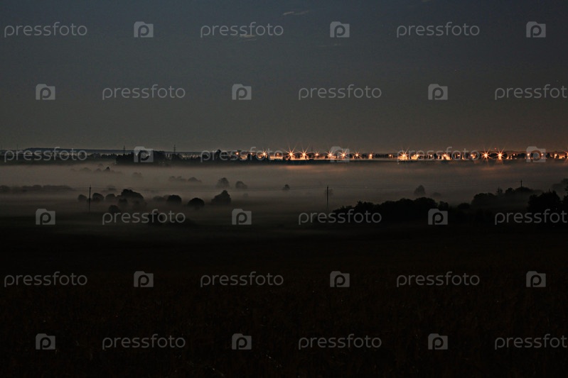 Поле туман ночной пейзаж
