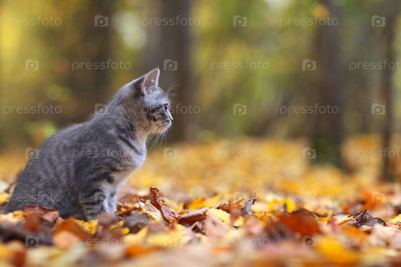 Котенок в желтые листья