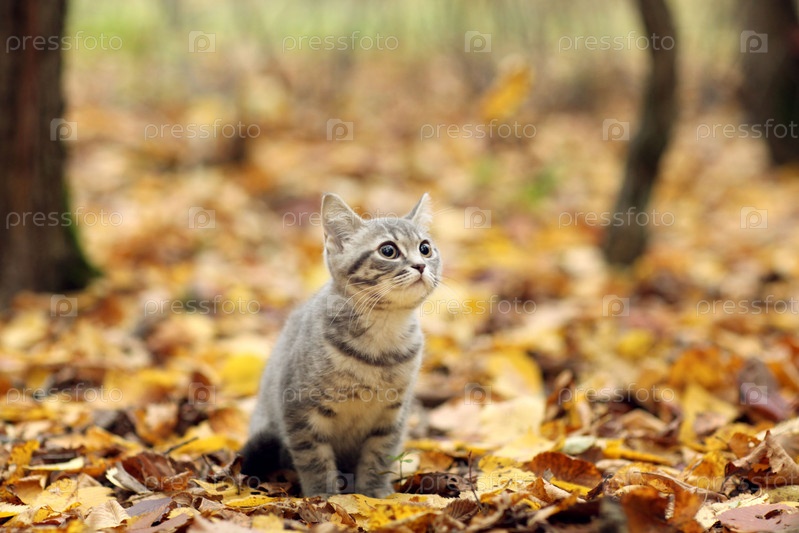 Британский котенок в Осенний парк