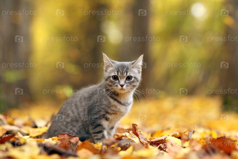 Котенок в желтые листья